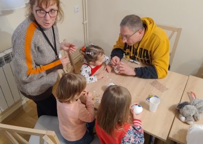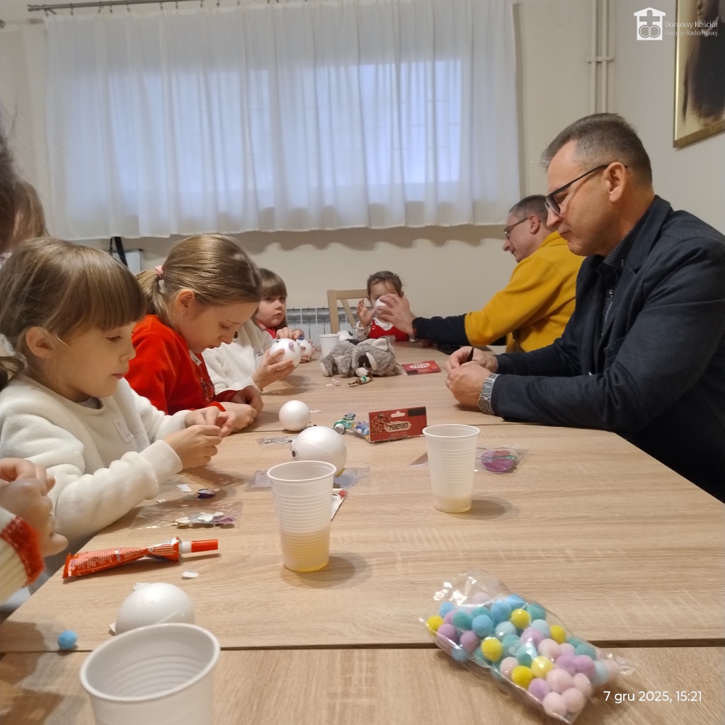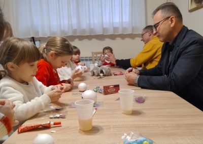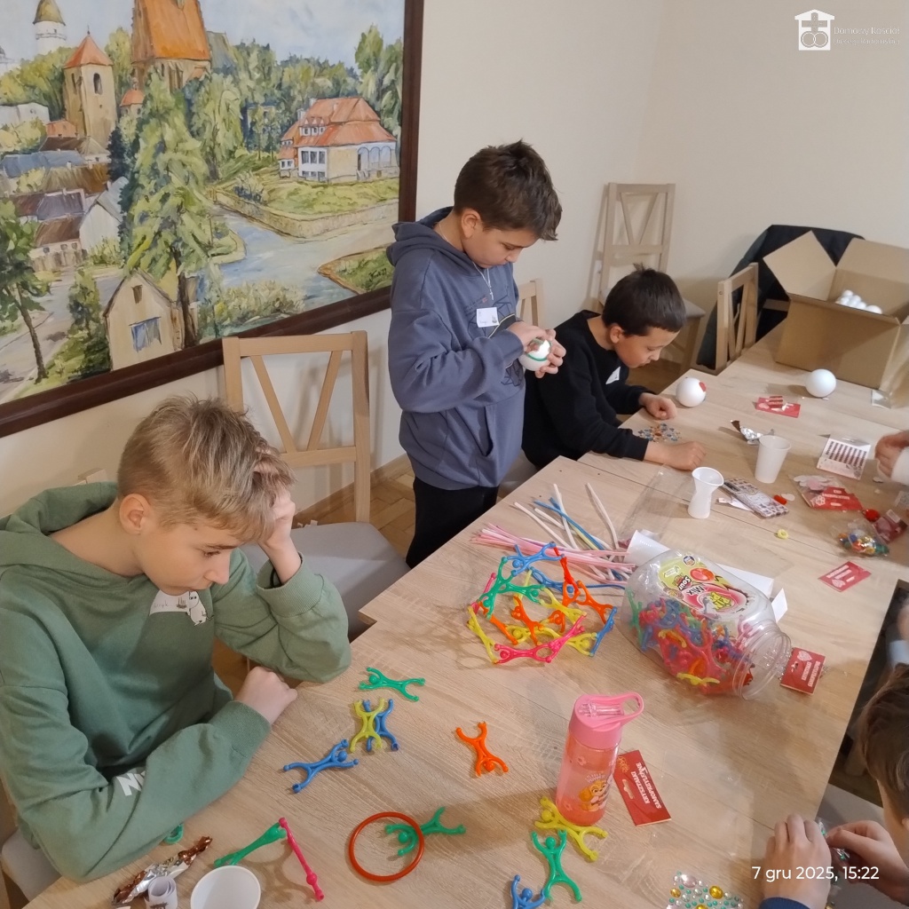 Podczas tych wszystkich wydarzeń nasze pociechy były pod cierpliwą i kreatywną opieką Joli i Wadiusza oraz Danusi i Roberta, między innymi wykonując piękne bombki choinkowe.
