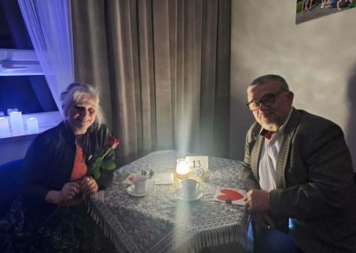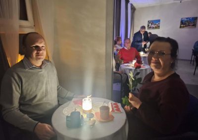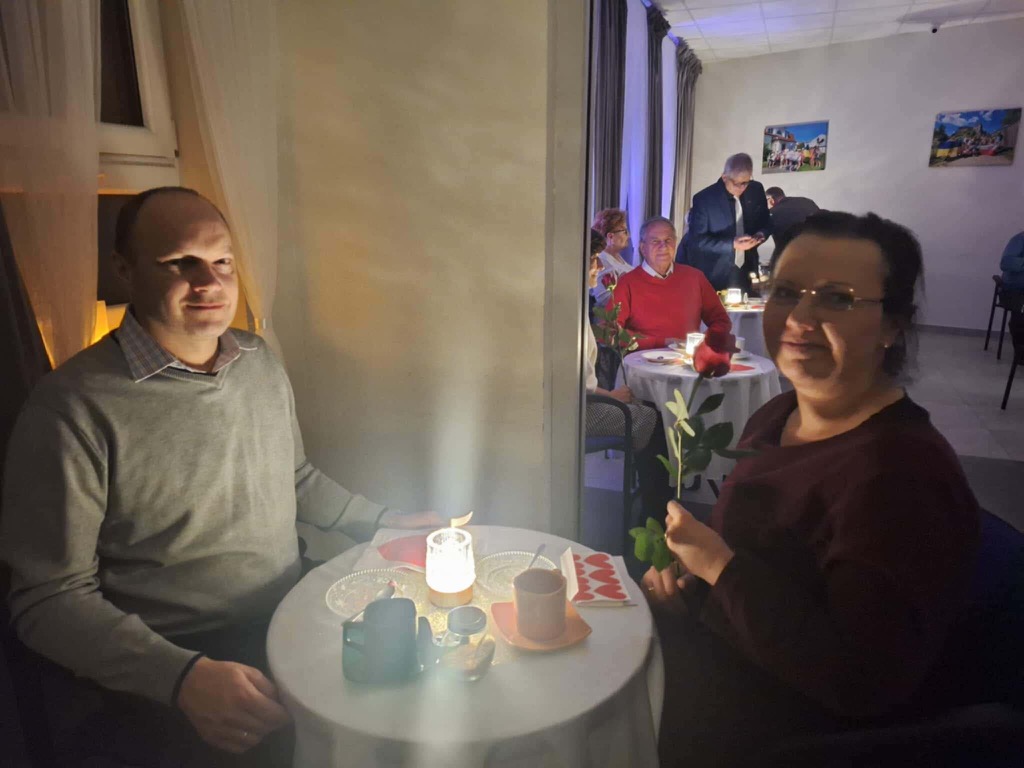 29.11.2025 r., w sobotni wieczór andrzejkowy, w parafii Matki Bożej Częstochowskiej w Radomiu miała miejsce I edycja „Randki Małżeńskiej”. Wydarzenie to, współorganizowane przez duszpasterzy naszej parafii oraz Domowy Kościół, zgromadziło 13 małżeństw. Staż małżonków był bardzo zróżnicowany. Naszą randkę rozpoczęliśmy seansem filmowym, a następnie przeszliśmy do kawiarenki na pyszne ciasto i kawę. Przy nastrojowej muzyce małżonkowie mieli czas na czułą rozmowę. Nie zabrakło wzruszeń, kwiatów, a nawet łez. Pięknym widokiem były pary małżeńskie wpatrzone w swoje oczy, trzymające się za ręce. Dnia 10 stycznia 2026 r. odbyła się II edycja Randki Małżeńskiej. Tym razem gościliśmy 11 par. Zobaczcie sami w galerii zdjęć oraz posłuchajcie wypowiedzi małżonków na załączonych filmikach. Poniżej przedstawiamy także kilka refleksji małżonków po randce, które udało się zapisać „na gorąco”. Opinie uczestników: